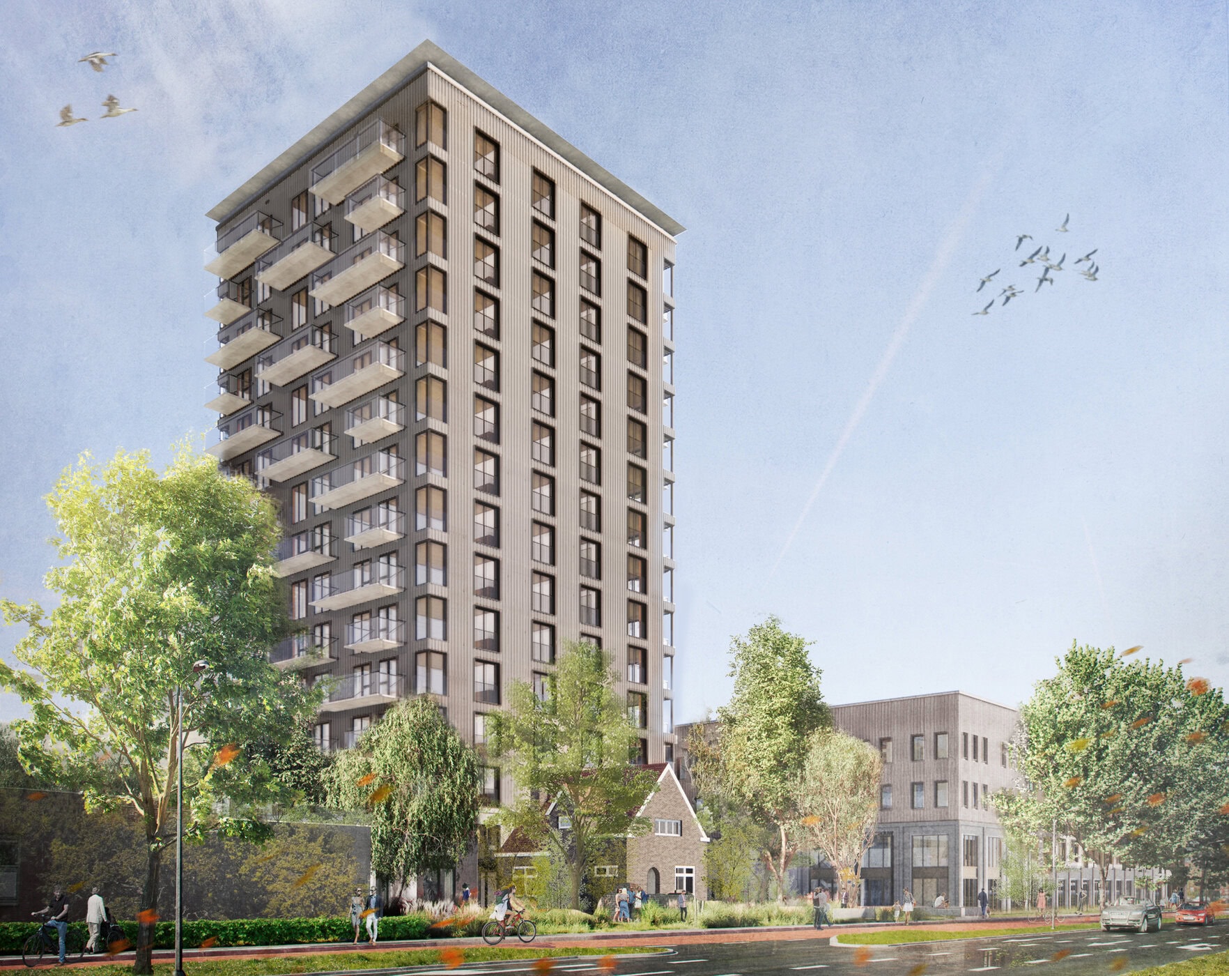 Fase 1 bestaat uit een woontoren, waarvan het casco wordt uitgevoerd in CLT en Glulam (houtbouw). Het betreft 15 bouwlagen met een totaal van 116 appartementen. Daarvan zijn er 48 bestemd voor de koopsector, en 68 in het middeldure huursegment.